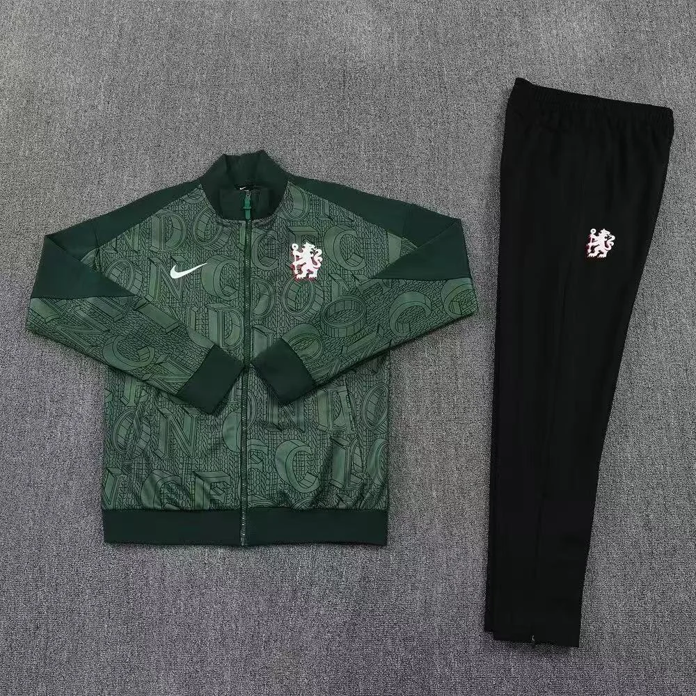 2025/2026 Chelsea Full Zip Training Suit Green Football Jersey Set 1:1 Thai Quality