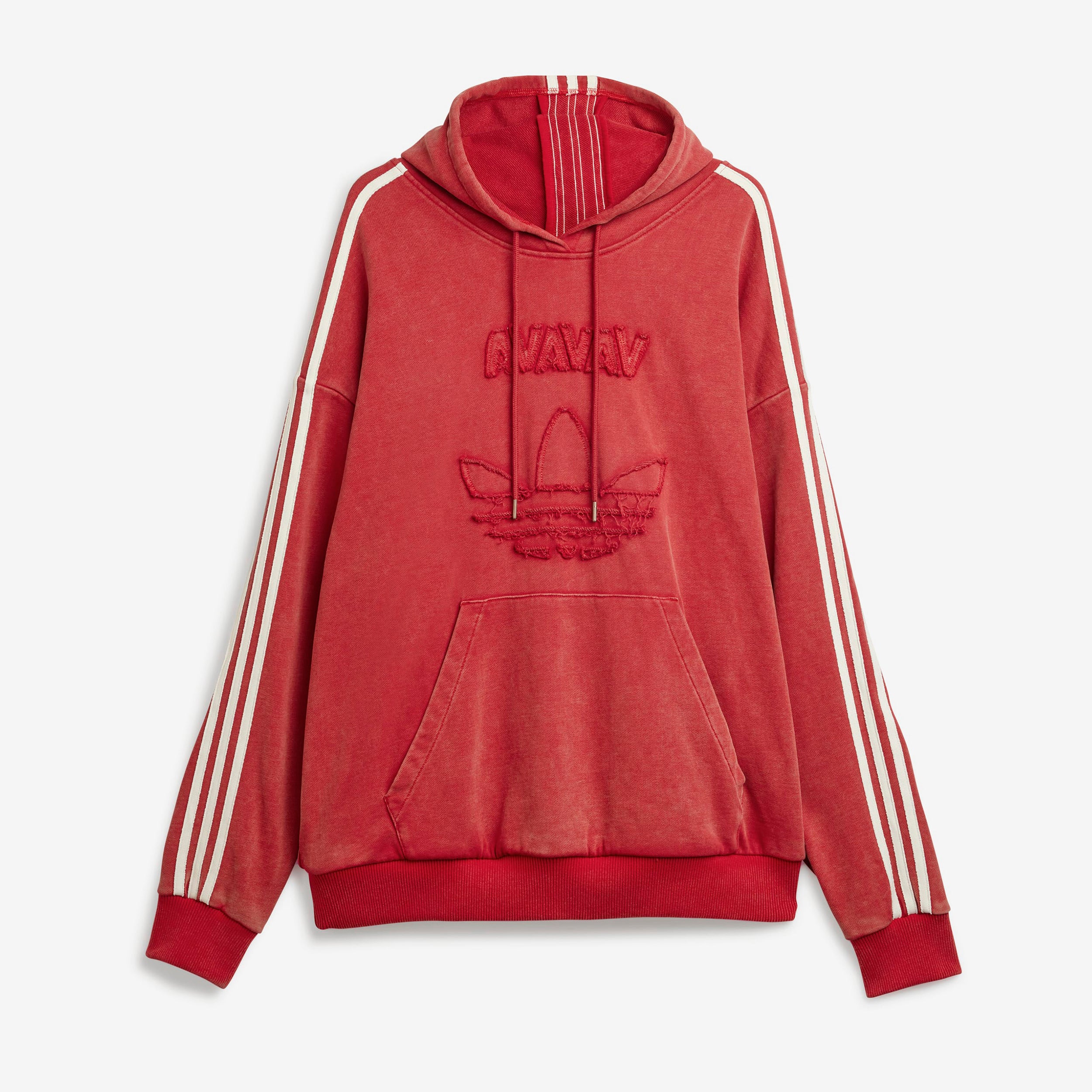 After teaming up for the first time in 2024, adidas Originals reunites with Swedish fashion label Avavav for Spring/Summer 2025 with a second subversive collaboration—redefining signature Avavav looks through a subverted sporting lens. Based on Avavav's iconic shoulderless silhouette, this adidas hoodie by Avavav borrows elements from the adidas archives to achieve a fresh look. It's crafted from distressed French terry material with a washed look, which gets emphasised further through the distressed branding execution, creating an air of casual luxury and vintage appeal.