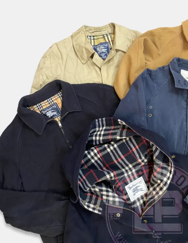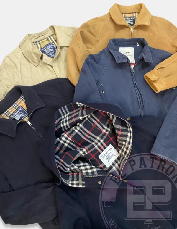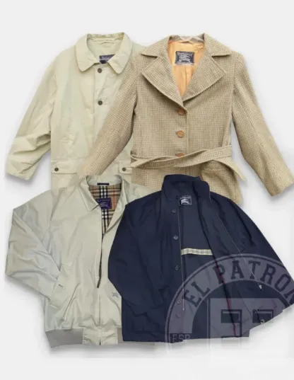 Dentro de estos lotes podremos encontrar las famosas gabardinas, con el estampado clásico de Burberry, chaquetas estilo harrington, chaquetas de piel, chaquetas largas… perfectas para darle ese toque lujoso a tu tienda vintage con estos productos Burberry.
