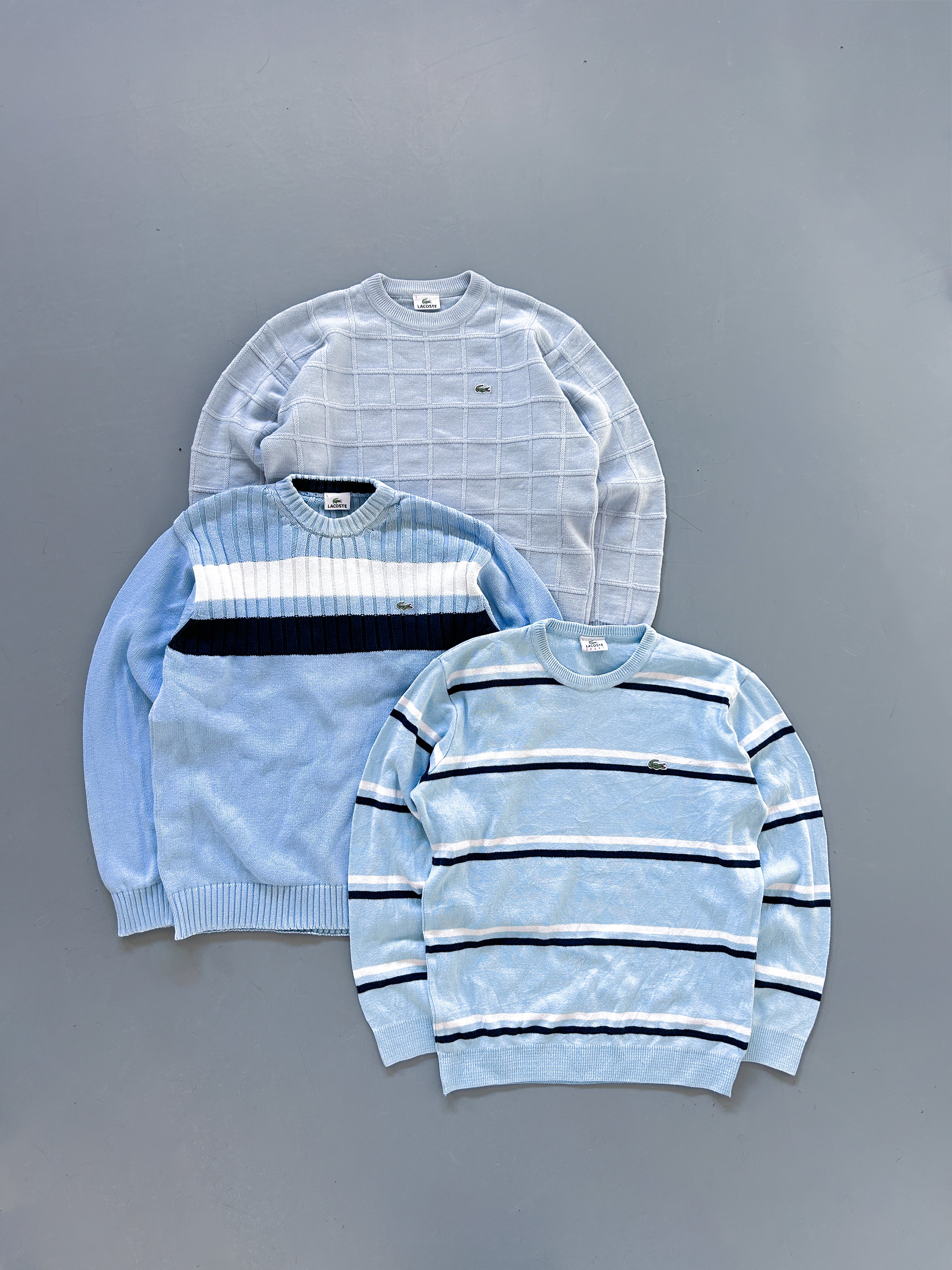 Enthalten sind nur die beliebtesten Modelle von Polo und Lacoste, darunter Crewnecks, Zopfmuster, Half-Zip und Strickpullover.