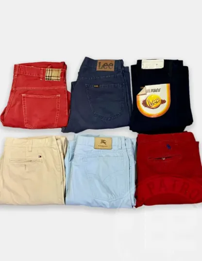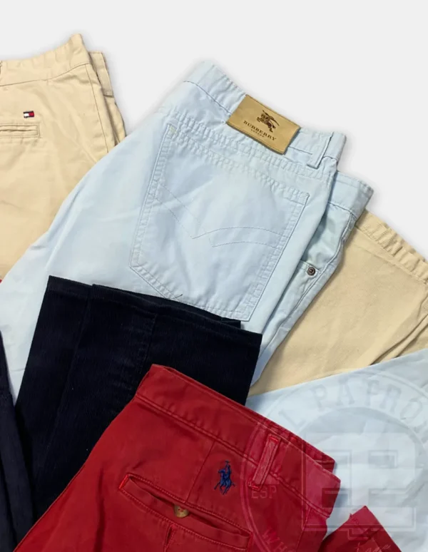 Descubre nuestros lotes de pantalones de marcas premium, que incluyen una variedad de estilos como vaqueros, chinos, rectos, cargo, y tiro alto. Con una amplia gama de tallas y colores, estos pantalones están diseñados tanto para hombre como para mujer. Ropa de categoría superior, lista para comercializar, perfecta para tiendas que buscan destacar con productos de calidad y estilo refinado.