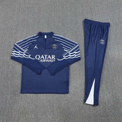The PSG Blue Tracksuit delivers a fresh, athletic look inspired by the iconic style of Paris Saint-Germain. Its rich blue color gives a clean, modern appearance perfect for both training and casual wear. Crafted from high-quality, breathable materials, it ensures lasting comfort and freedom of movement. A perfect choice for fans who want to combine performance, style, and club pride.