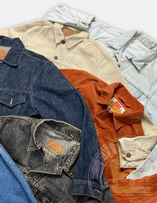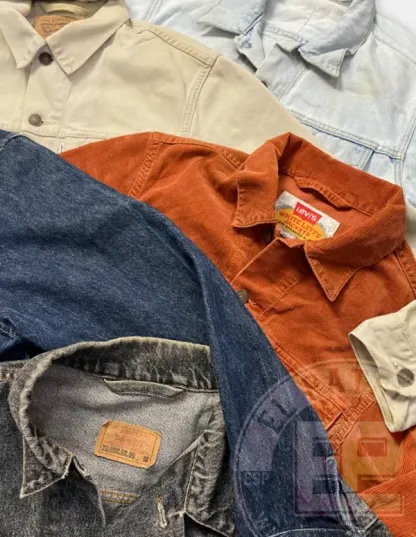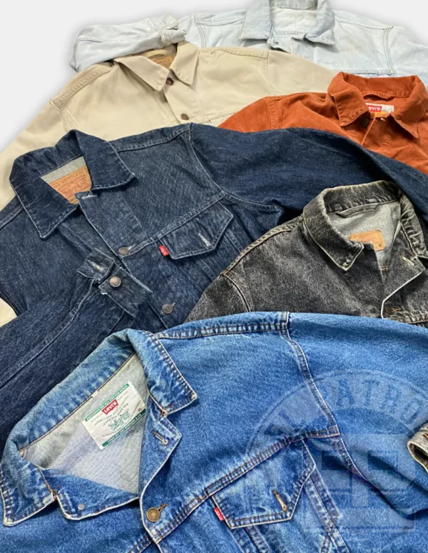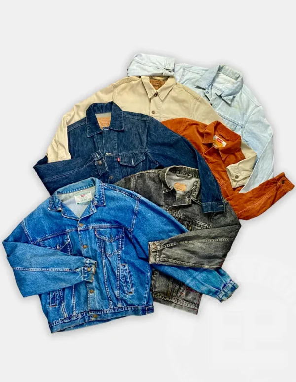 Esta categoría incluye chaquetas vaqueras de marca con o sin forro en una gama distinta de colores donde predominan el azul y el negro mayoritariamente. Es otra pieza vintage para los amantes de la moda sostenible, las piezas realmente icónicas de los 90 y el estilo retro.