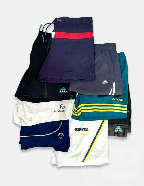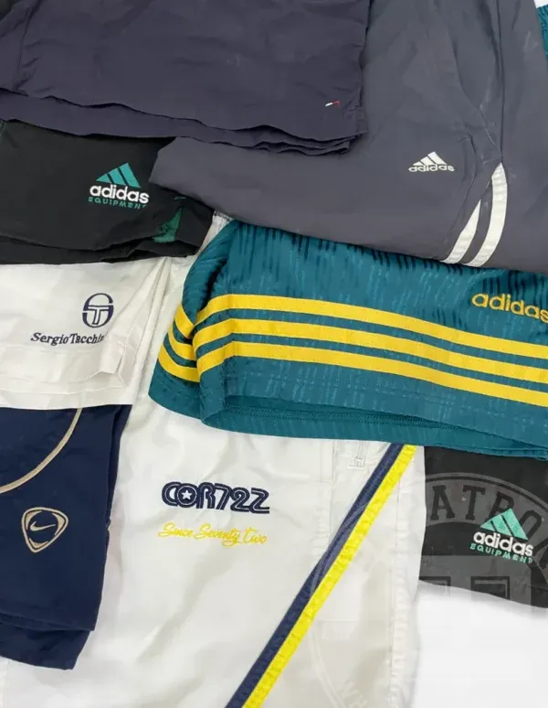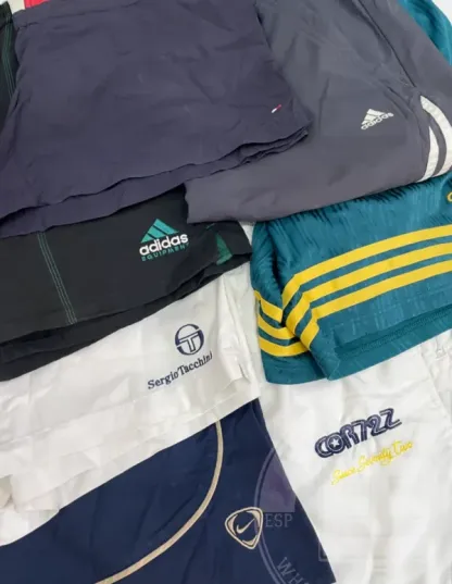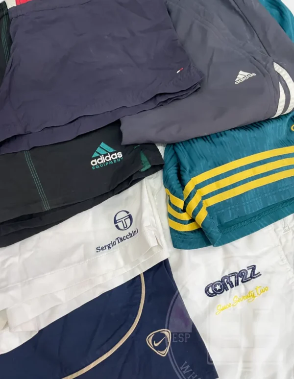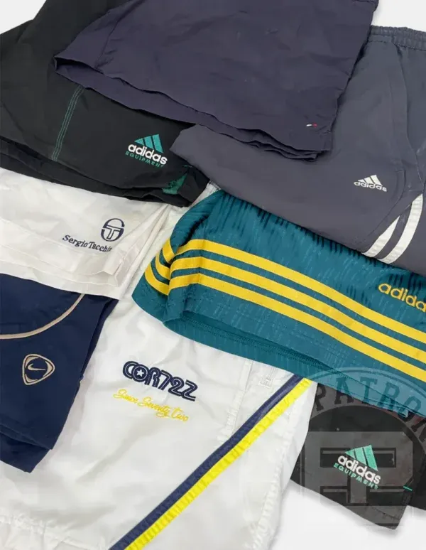 Esta categoría consiste en una gran variedad de pantalones deportivos de marca cortos con variedad de tejidos, estampados y diseños. Estilos como «trackpants» son los más comunes dentro de estos lotes, donde podrás encontrar pantalones de colores «crazy» modernos hasta los años 80.