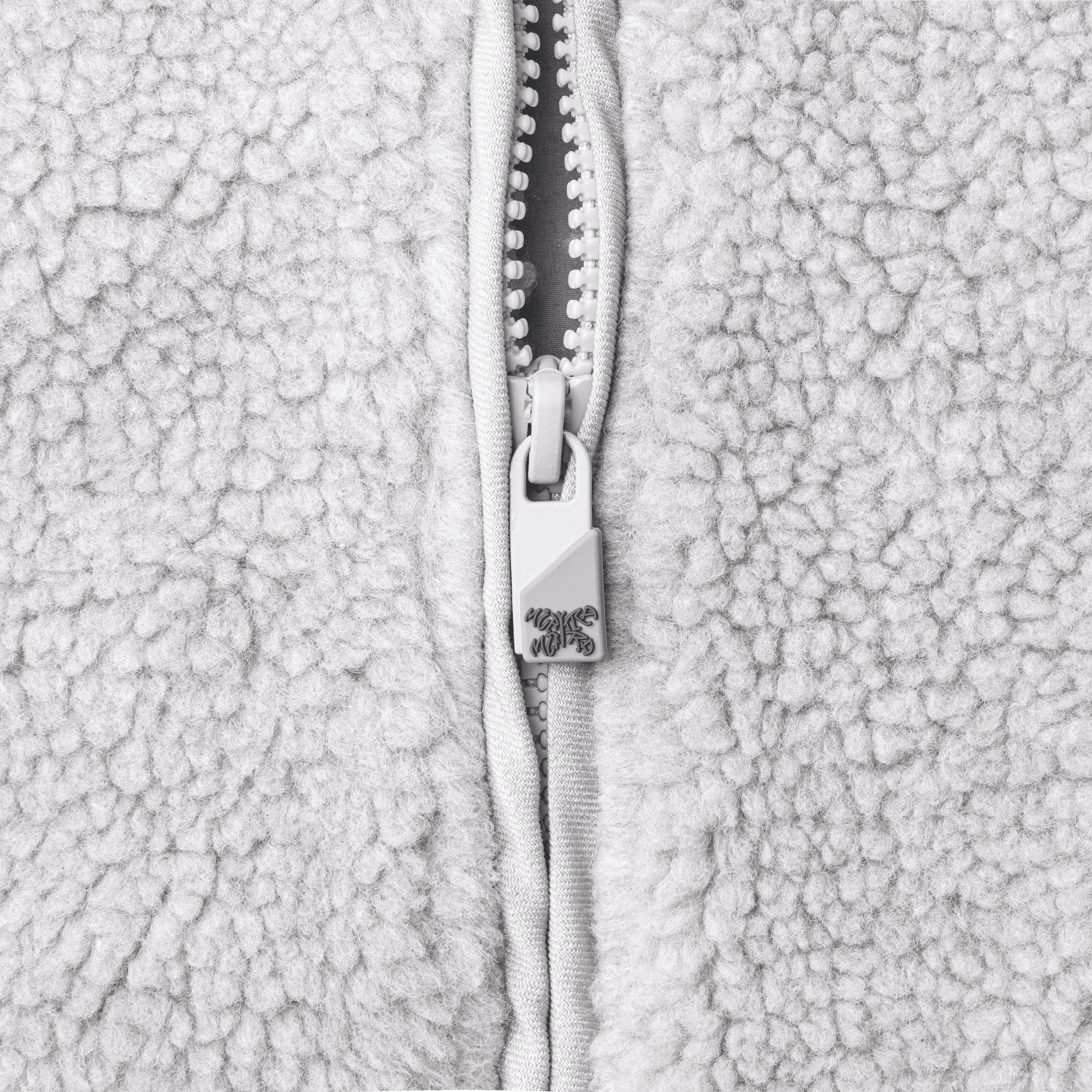 - 500gsm Sherpa fleece outer- 100% polyester lining- boxy fit- 2 tone fleece panelling- 3D piping- dyed leather patches on shoulder & back- raglan cut- lining zip pocket